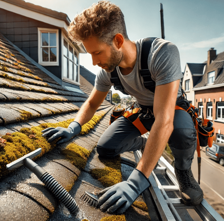 Le nettoyage permet de retirer la mousse, les algues et les débris accumulés, surtout après l’hiver. Le démoussage prévient les infiltrations en assurant une surface lisse pour l’écoulement de l’eau.